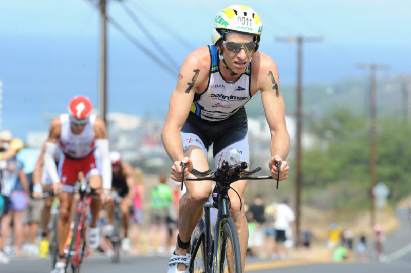 スイムでは、実際本調子だったとは感じなかったし、トランジションからバイクに乗るまでの間も良い感じではなかったが、あまりそのことは深く考えすぎず、これからまだ長い日が続き、回復するまで十分時間はあると思った。クイーンKハイウェイ(メインバイクコース)に入った後、相当な時間を集団の先頭で激走していて、最初の引き離しが始まるのを待ちながらも、先週の土曜に乗ったバイクの感じで、自分の能力を信じながら、体が暖まり始めるのを願っていた。誰も集団から飛び出すことはなく、徐々に25人のパックの15位くらいまで下がっていた。パックの中では、簡単に付いて行くことができたが、でも滑らかな坂を上がって行くにつれ、パックの間が開いていき、他の選手は、坂の下りを使って差を詰めるために駆け下りることをしていたが、自分自身は登り坂ではかなり余裕で登ることができ、簡単にそのギャップを縮めれることができた。約70キロ地点のある一つの上り坂で、自分のパックの先頭にいた選手達がスピードを上げ、自分の前にいた3人のパックと先頭のパックの間が開いたのを見ていなかった。自分の周りにいた選手達は、すでに疲れ始め、ただ1人の選手だけが、自分の前を走り続けていた。その差を詰めようと、調子良く乗リ始め、Hawi(折り返し地点)までの上り坂と向かい風の中、前と差を詰められたが、それだけでは十分ではなかった。一度折り返し地点を回ってから、自分の前にいる選手達に、下り坂の追い風の場面で追いつくチャンスを掴めず、それは自分にとって得意な分野ではなかった。