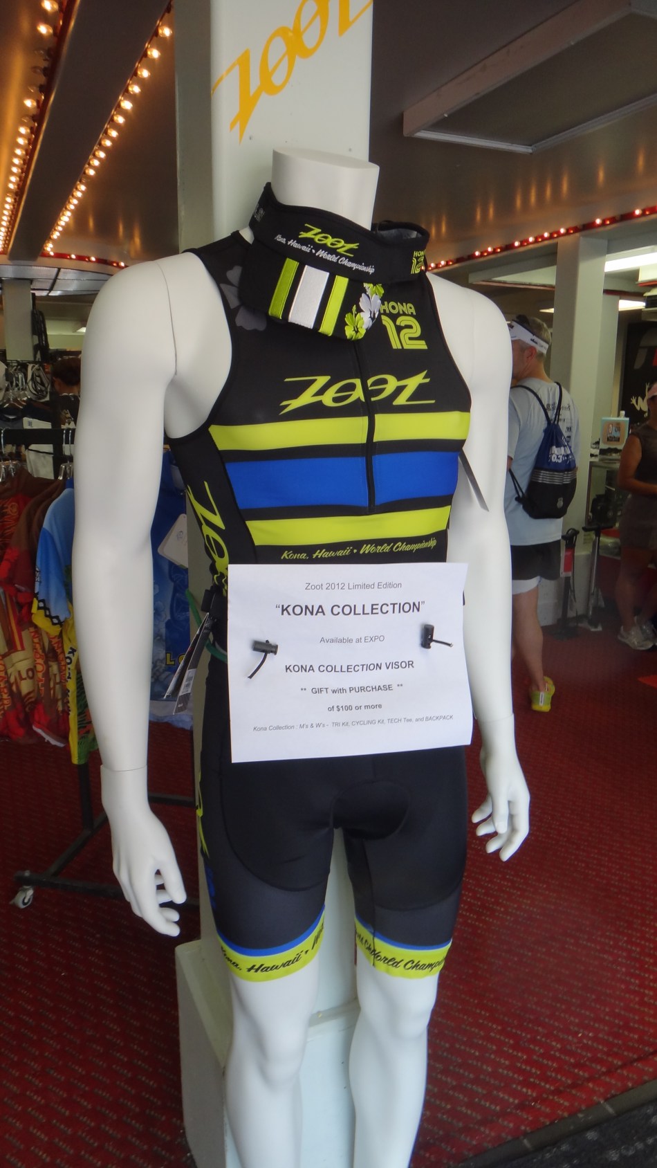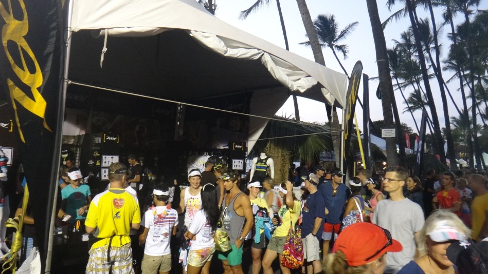 毎年トライアスロンウェアメーカーの中で、一番大規模に展開しているZootが、恒例のコナ限定モデルを発表し、エキスポ初日は、キャッシャーが長者の列に。。