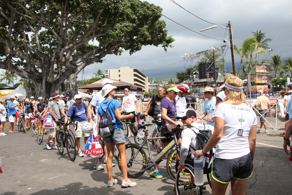明日開催される2012年Ironman Hawaii 世界選手権に向けて、1日前の今日バイクチェックインが行われた。多くのアスリート達が、自慢のバイクを見せつけるように、高級感とスピード感が浮き出る程のスーパートライアスロンバイク達をトランジションへと預け始めた。