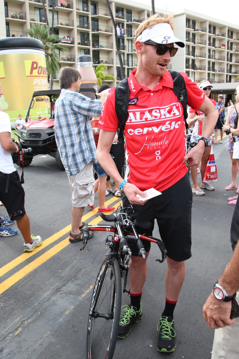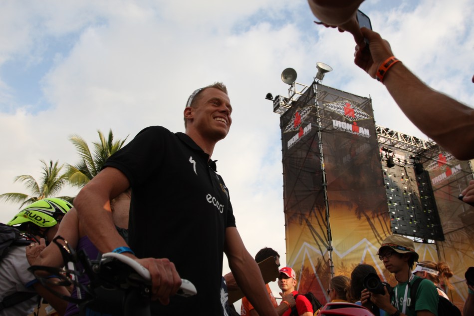 本命前年度世界王者Craig Alexanderも、人ごみをさけ急ぐように、バイクチェックインへ。