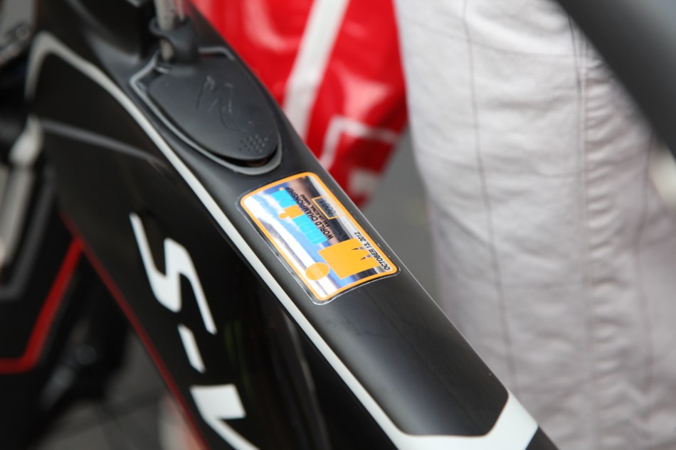 Craig AlexanderのSpcialized Shivに、貼られた001番のナンバープレート!