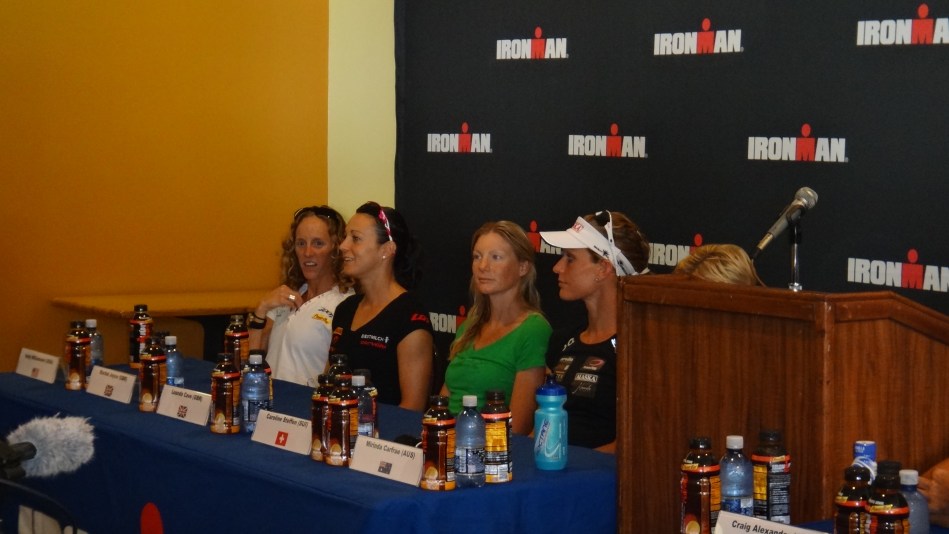 記者会見のステージに現れたのは、プロ男子からオーストラリア代表Craig Alexander、オーストラリア代表Pete Jacobs、ドイツ代表Andreas Raelert、アメリカ代表Jordan Rapp、ドイツ代表Sebastian Kienle、プロ女子からオーストラリア代表Mirinda Carfrae、スイス代表Caroline Steffen、イギリス代表Leanda Cave、イギリス代表Rachael Joyce、アメリカ代表Kelly Williamsonが登場した。