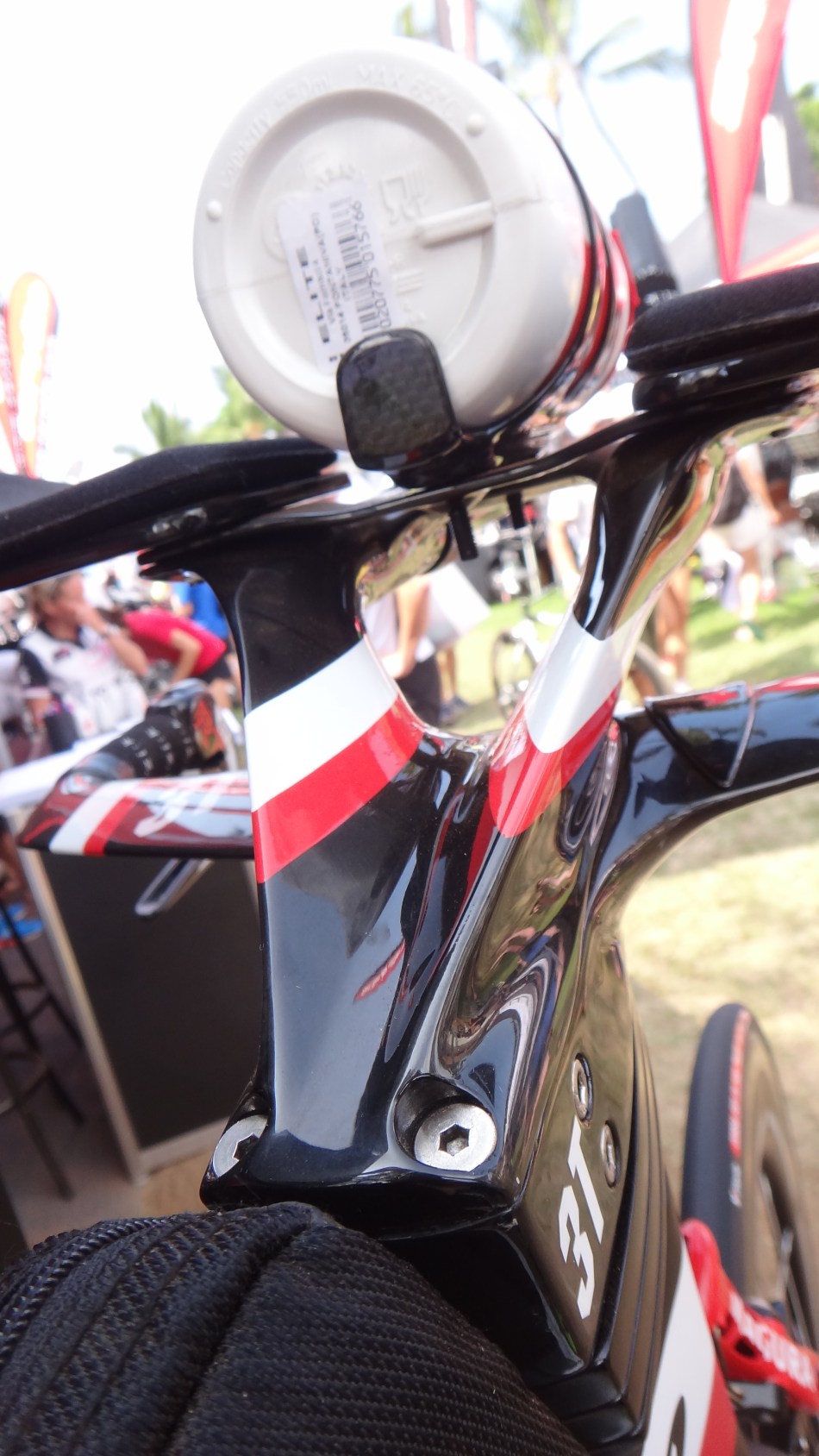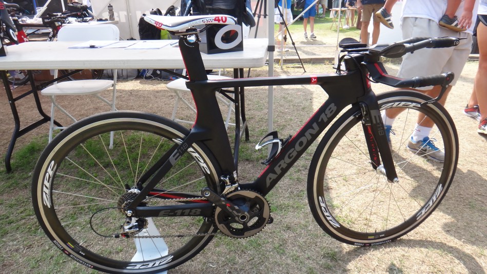 トライアスロンバイクとしての有名になった、カナダブランドのArgon 18 E-118も堂々とこのハワイのエキスポで大きく発表!ハンドルバー部分をフラットとカーブバーの2種類を採用し、色もグロスブラックに赤を基調としたシックな色使いで、2007、2008年の最速トライアスロンバイクとしての評判をそのままで、デザインを変え新しい形で発表。