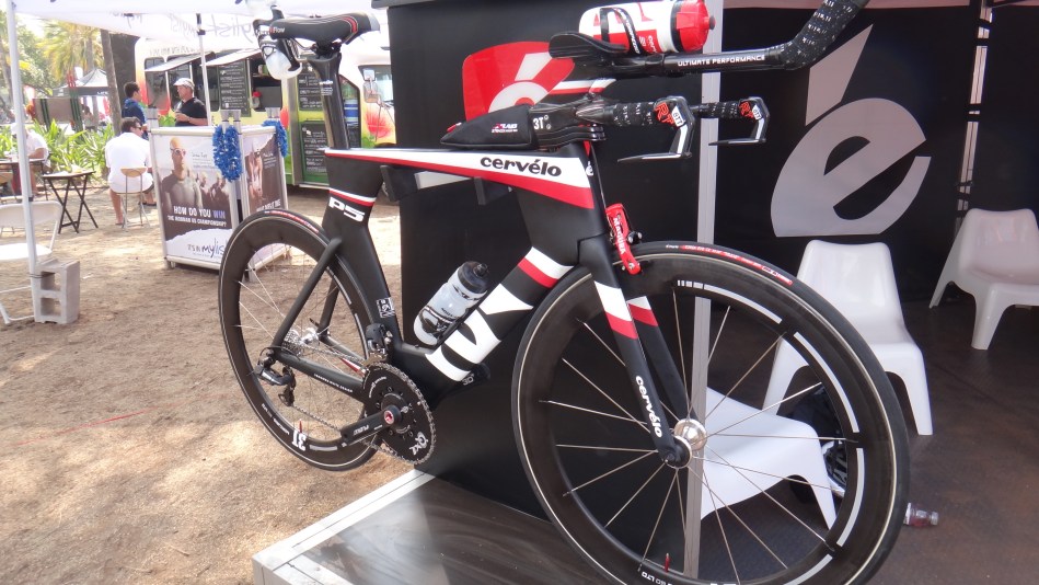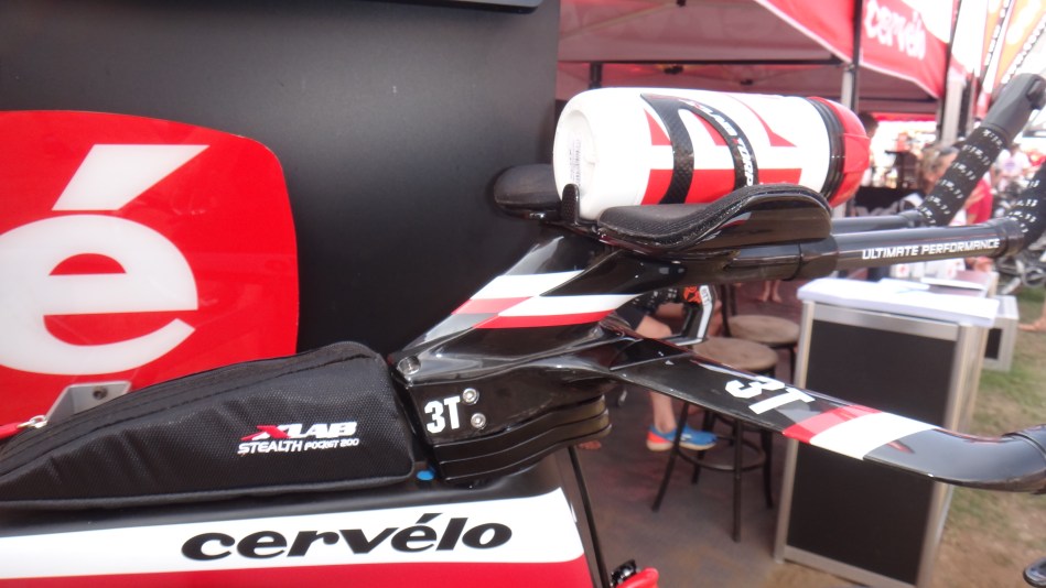 今年発表したCerveloのニューマシンP5のトライアスロン用モデルSIXが、すでに多くのライダーにこの世界選手権でも愛用され始めている。色はシャイニーブラックとグロスブラックの2種類が展示。バラエティーにとんだハイドレーションやコンポネントを数台で組み合わせ、X-labもCervelo専用シングルボトルケージホルダーとベントーボックスも付きで発表。