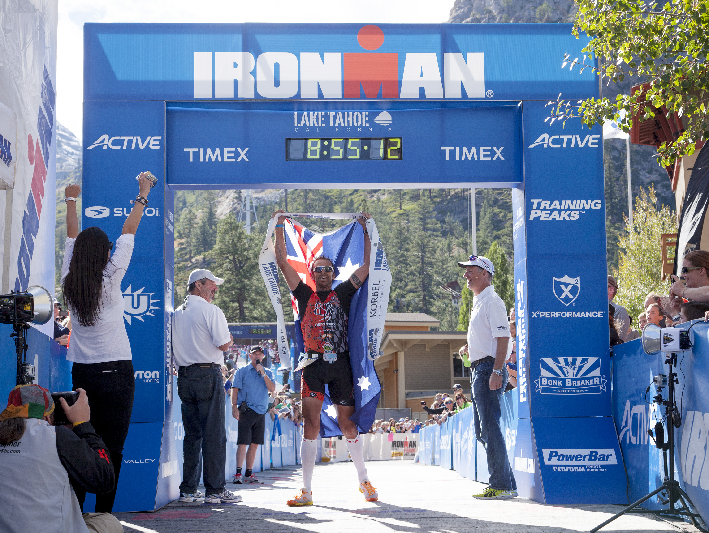 プロ男子:2週間前のIronman Louisvilleを制したばかりの、オーストラリア代表Chris McDonald(通称Big Sexy)が、キャリア6度目のIronmanでの優勝をこの初開催されたLake Tahoeにて果たした。水温と気温共に低い中、Lake Tahoeの湖で、プロ男子が最初にスタートし、注目を浴び始めている若手フランス代表Romain Guillaume(ロメイン・ギローム)が、51分36秒でトップ通過し、同じ集団に、今年のIM70.3世界3位オーストラリア代表Joe Gamblesと高速サイクリストであるドイツ代表Maik Twelsekがスイムフィニッシュをした。バイクスタート直後、Twelsekが、バイクで強さを見せ始め、後ろとの距離を離していきバイクフィニッシュまで完全リードを取る。だが、その中で、2分遅れでバイクをスタートした、McDonaldが、Twelsekと同等の走りをバイクで見せ、その差をトランジションでは、1分差まで縮める。ランで勝負を賭けるMcDonaldが、調子の良い走りを見せ、ランが苦手なTwelsekを直ぐさま抜かし、トップへ踊りでる。そのまま展開は変わらず、McDonaldが、最初にフィニッシュテープを切り、第一回目の優勝者としてタイトルを得た。2位には、バイクでの逃げが功を奏し、Twelsekがフィニッシュし、バイクでの遅れが大きく響き得意のランで追いつくことが難しかったGamblesが、3位に入賞した。