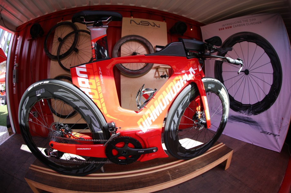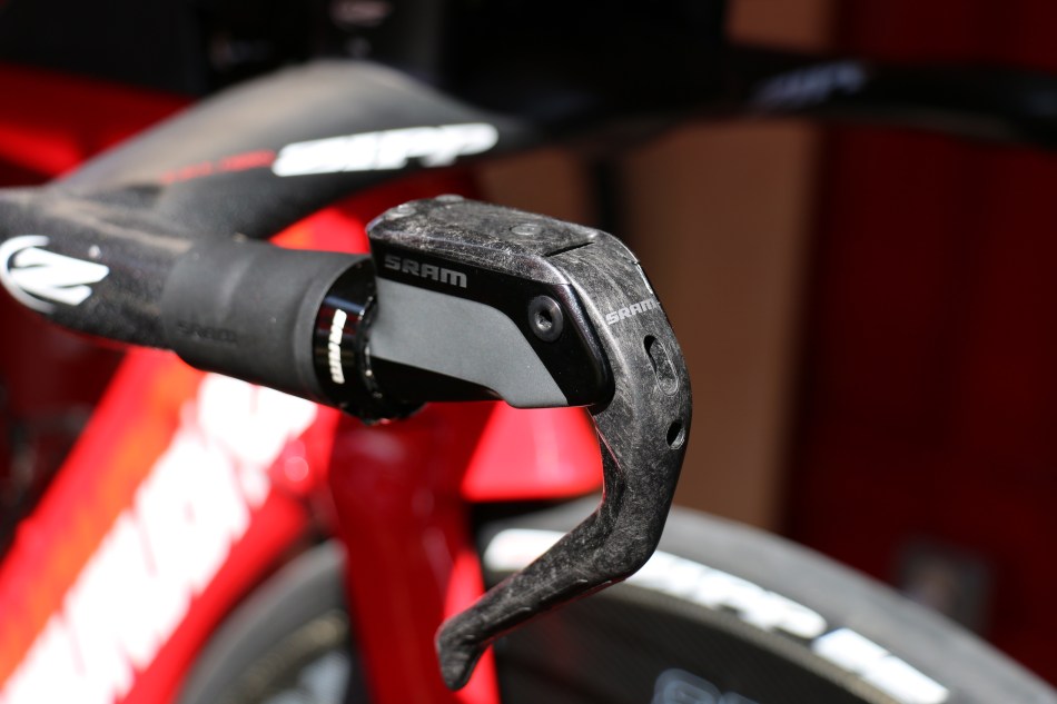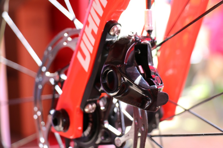 今年の7月に、米国発バイクコンポネント大手SRAM(スラム)から、エアロブレーキ仕様の油圧式ディスクブレーキが発表された。今回のコナでも注目の商品として、正式に公開。Cannondaleの新しいSuper SliceとDiamondbackのAndeanに搭載されて展示されていた。