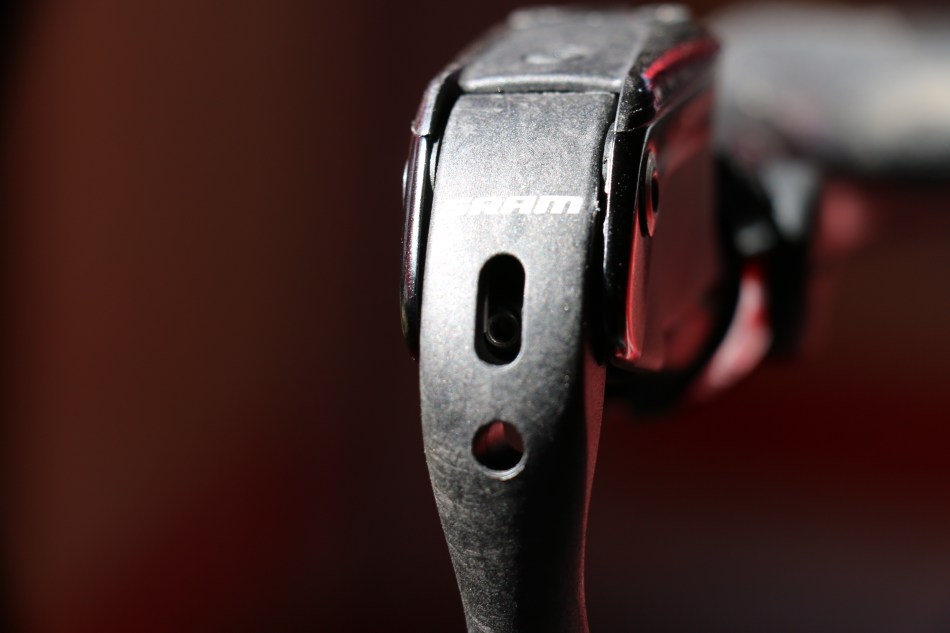 ブレーキレバーの見た目は、オイルリザーバーが上部に搭載されているため、かなりごついデザインだが、握った感触は悪くない。いままでのエアロブレーキレバーは、シンプルなデザインだったため、手に汗をかいている時に、段差などでブレーキレバーから、手を前へ滑らせてしまうということも、あり得るシナリオだった。この新しいブレーキレーバーは、ちょうど手を握るところで、ブレーキリザーバー部分の出っ張りがストッパーとなってくれる利点もある。