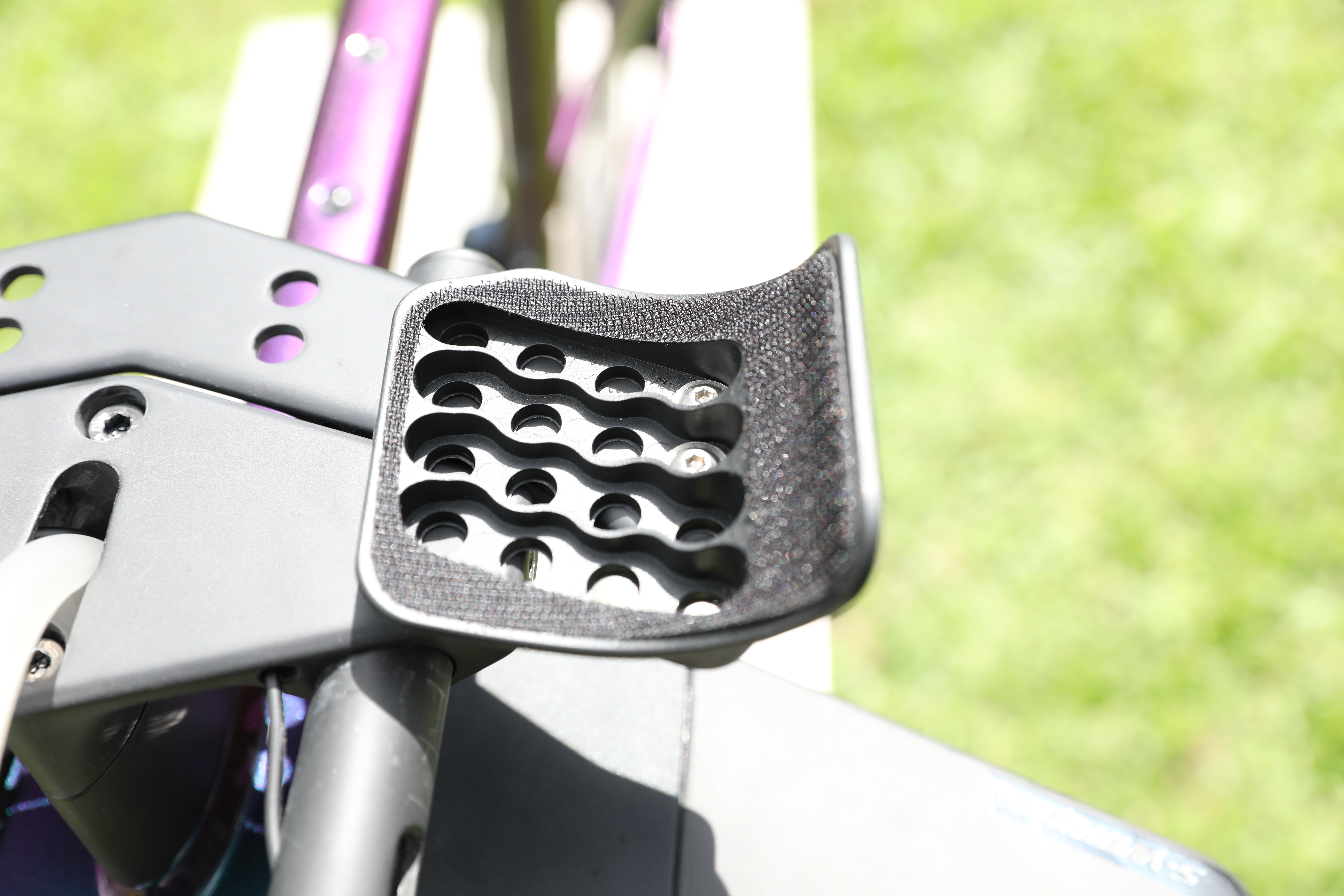 ハンドル周りも、シンプルなデザインで、5ミリ六角レンチがあれば、組立が可能なほどだ。そして、バイクフィティングに関しては、Retulのフィティングデータを元に、最適な調整域を計算して製作されたため、初代のShivよりも幅広い調整が可能だ。パッドの幅から前後位置の調整まで、12タイプの細かなセッティングも可能。そして、パッドのベースプレートの高さもスペーサーを使用することによって、上下調整ができる。