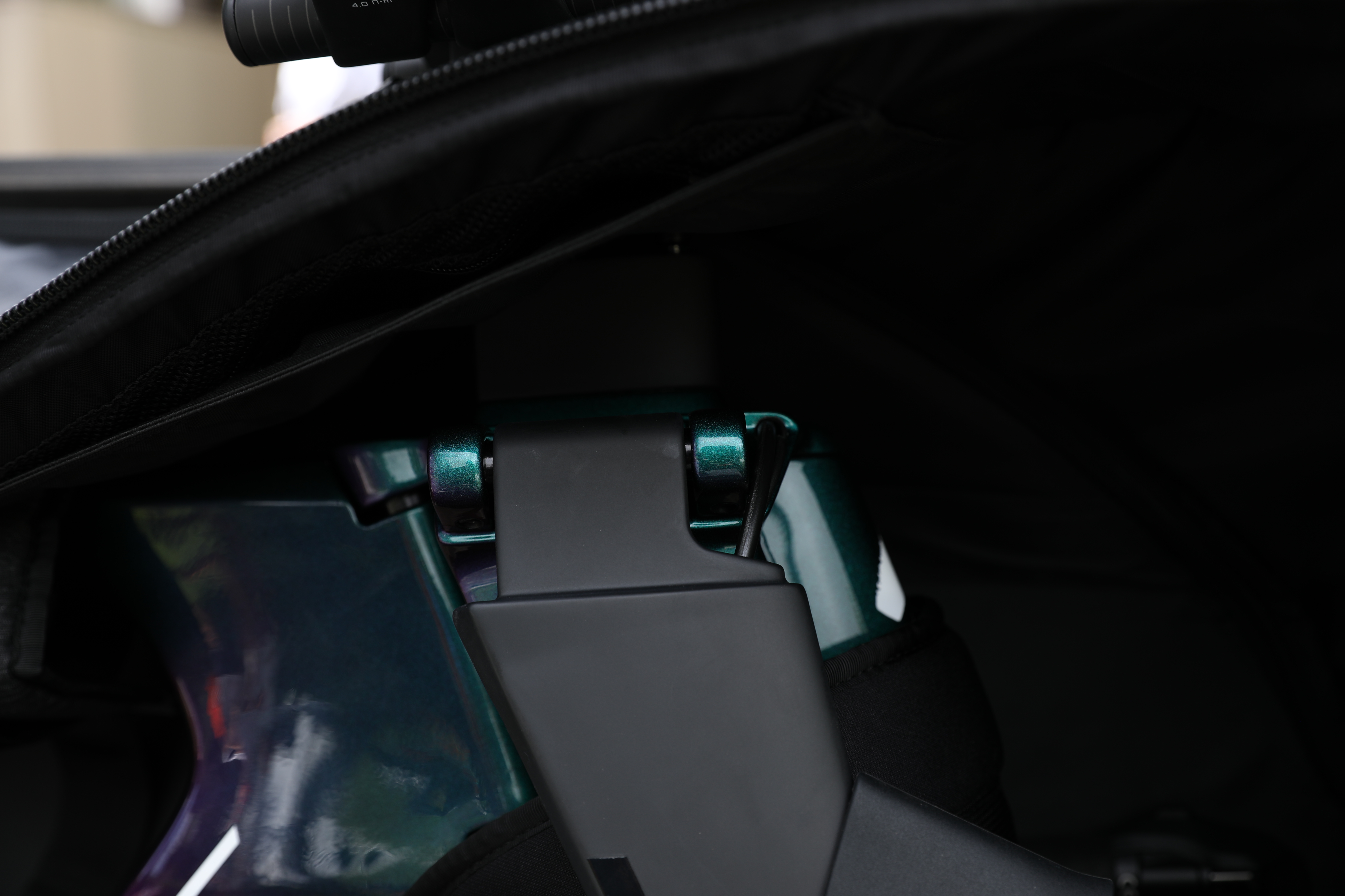 このバイクには、専用のトラベルバッグがついて来る。パッドが入った軽いソフトケースのデザインだ。ハンドルも折り曲げ、エアロバーも簡単に取り外しができるので、すぐに組み立てが可能だ。大きさもほかのバイクバッグに比べ小さめなので、とてもコンパクトなケースとなっている。