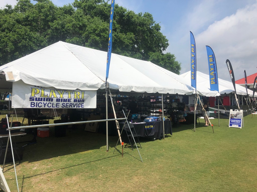 今回は、No Soectator (観戦者なし)レースで、エキスポもアイアンマンパートナーのベンダーのみで、かなり規模が小さい。オフィシャルストア、ホイールレンタル、バイクトランスポート、ノンアルコールビール、コンプレッションブーツの企業のみ。 No Soectatorといっても、観戦者はたくさんコースにいるが、スイムスタート、トランジション、フィニッシュラインのエリアの周りは、アスリート以外立ち入り禁止。